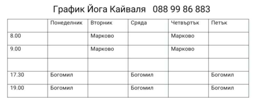 Занимание 75 мин. € 7.67 / 15 лв.